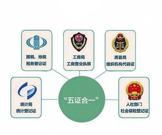 五证合一,即企业无需分别申请组织机构代码、税务登记证、社会保险登记证和刻制公章准许证明,只到工商部门申请加载统一社会信用代码的营业执照(以下统称“一照一码”)即可。